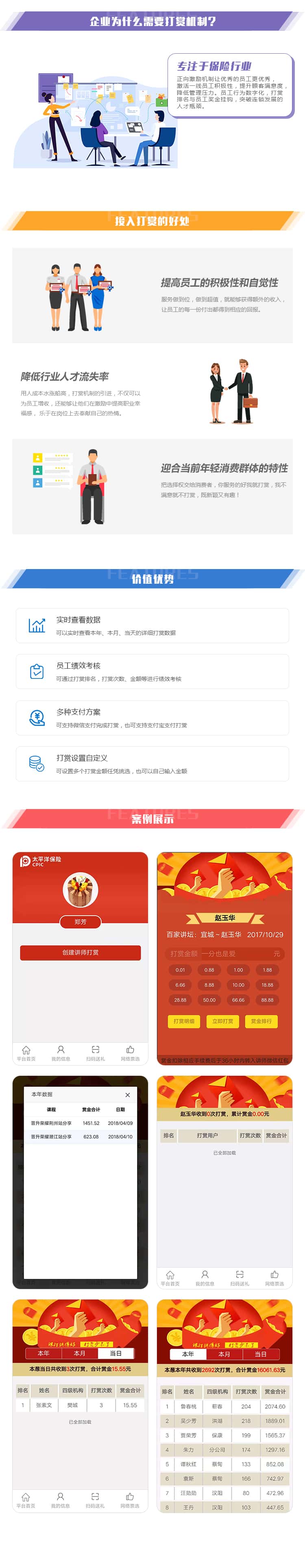可通过打赏排名,打赏次数、金额等进行绩效考核